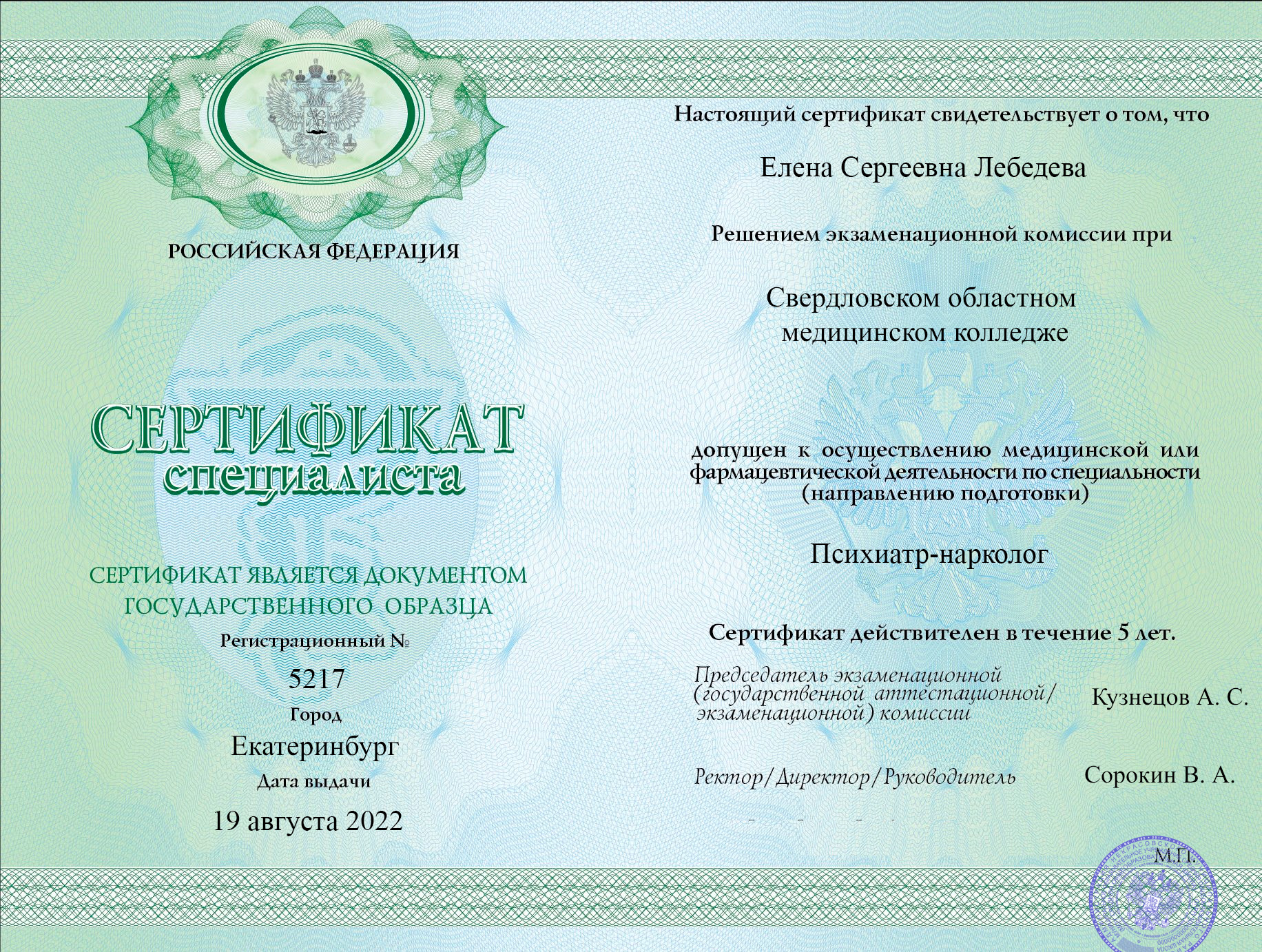 Елена Сергеевна Лебедева врач нарколог клиники доктора Стукаловой в Армянске